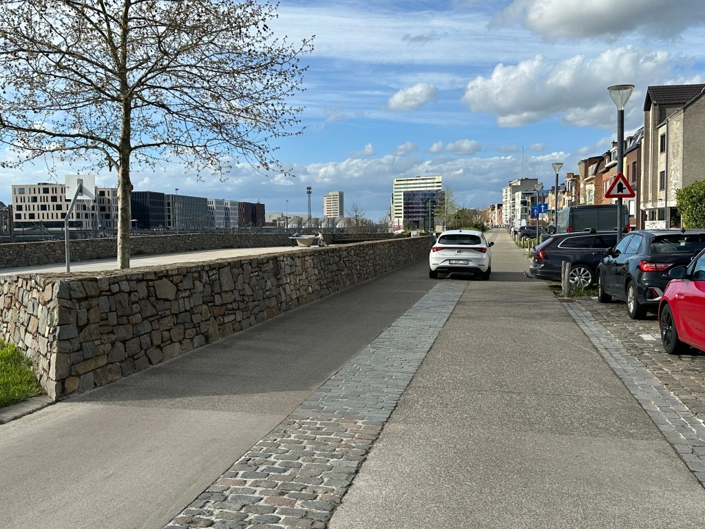 In de Martelarenlaan gaf het wegbeeld duidelijk een signaal dat men in een fietsstraat reed en door de herhaling van die borden na elk kruispunt bleef men dat ook bevestigen. Maar deze inrichting stopt aan het derde kruispunt.