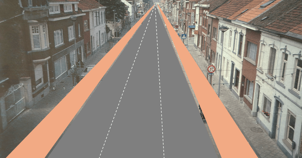 Net die kwaliteit van de randzone tegen de gevels die de leefbaarheid van deze hoofdstraat verhoogde dreigt te verdwijnen door de derde rijstrook voor het openbaar vervoer. De ruimte die daarvoor nodig is wordt afgenomen van de parkeerstroken aan weerszijden wat betekent dat de voetpaduitstulpingen die dienden ter compensatie van de smalle stoepen zullen verdwijnen en de verkeersborden en verlichtingspalen opnieuw ruimte zullen innemen op de stoepen. Fietsen kunnen niet meer gestald worden tegen de gevel omdat de nieuwe wegcode een vrije doorgangsruimte van 150cm vraagt naast die geplaatste fietsen en die zal er niet meer zijn. Moeten de fietsen samen met de auto’s dan onder het blauwputplein of op het kerkplein geparkeerd worden? Dat zal niet gebeuren.