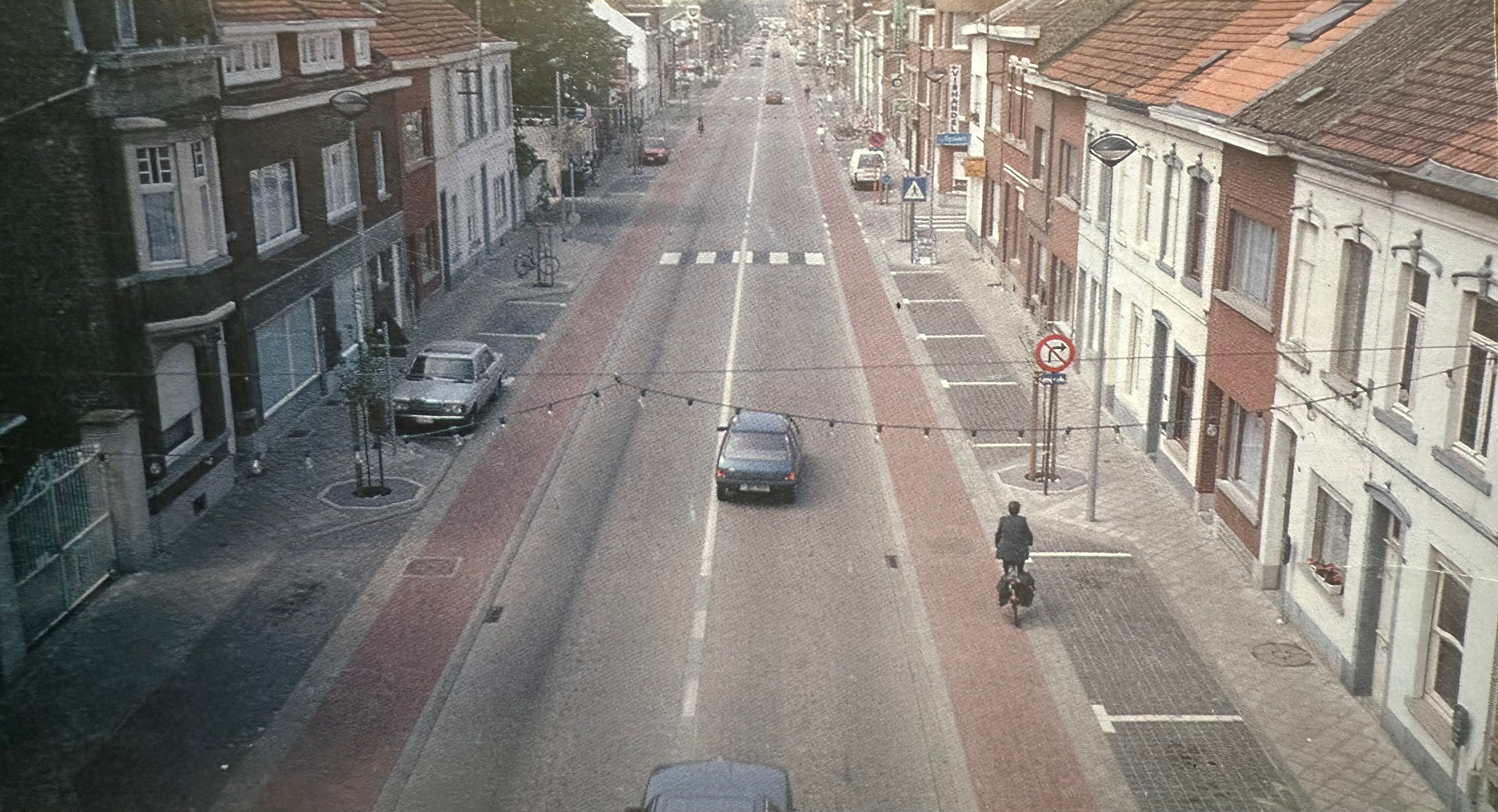 Met veel zorg heeft arch. Koen Stuyven van Langzaam Verkeer VZW (het huidige Mobiel 21) toen de weg ontworpen en vooral het kerkplein, de boomvakken en de voetpaduitstulpingen. De manier waarop de randzone werden ontworpen draagt vandaag bij aan de leefbaarheid. Op regelmatige afstanden (om de 3-4 parkeerplaatsen) werden in parkeervakken voetpaduitstulpingen. De brochure zegt daarover: “Door de maximale veiligheid die aan de fietsers is gegeven en de beperkte ruimte tussen de gevels heeft het voetpad niet overal de breedte gekregen die het verdient in een winkelcentrum. Dit wordt gecompenseerd door stoepverbredingen in de parkeerstrook waarop ook een boom, een verlichtingspaal en verkeersborden hun plaats vinden. “